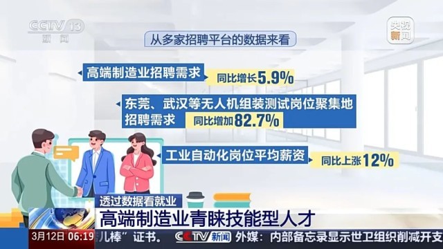 从多家聘请平台的数据来看,高端制制业聘请需求同比增加5。9%。东莞、武汉等无人机拆卸测试岗亭堆积地,聘请需求同比添加82。7%。工业从动化岗亭平均薪资同比上涨12%。此外,涉及从动驾驶手艺的职位占比显著提拔,企业智能化转型鞭策前端开辟岗亭需求增加8%,运维支撑类岗亭薪资较客岁同期上涨9。8%。