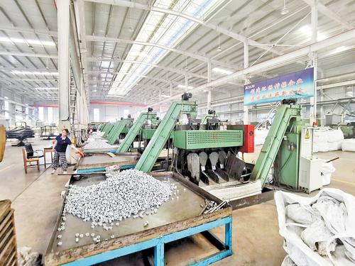 7月30日,市兆运电力紧固件制制无限公司出产车间内,工人正正在出产电力器材公用紧固件。 本报记者 李冬云摄。